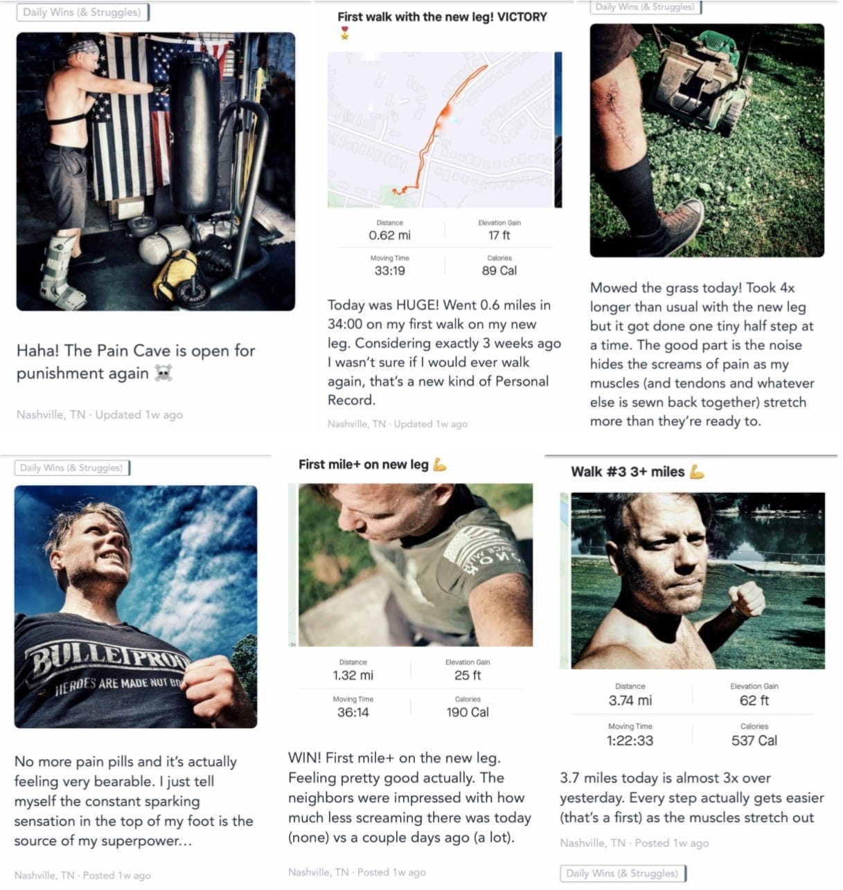 Almost died then learned to walk again.