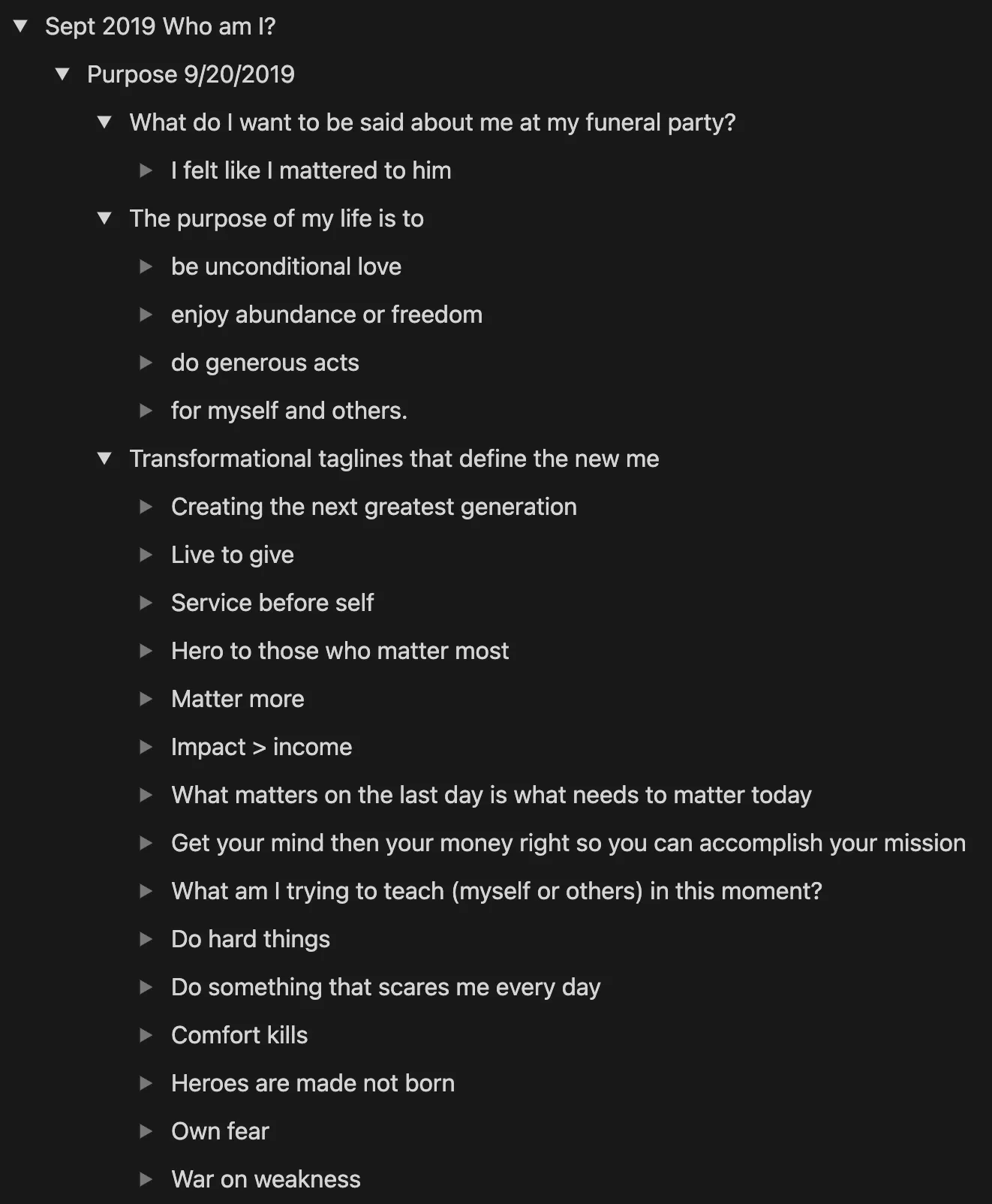 Tim Ferriss fear setting - do https://tim.blog/2017/05/15/fear-setting/ at least quarterly