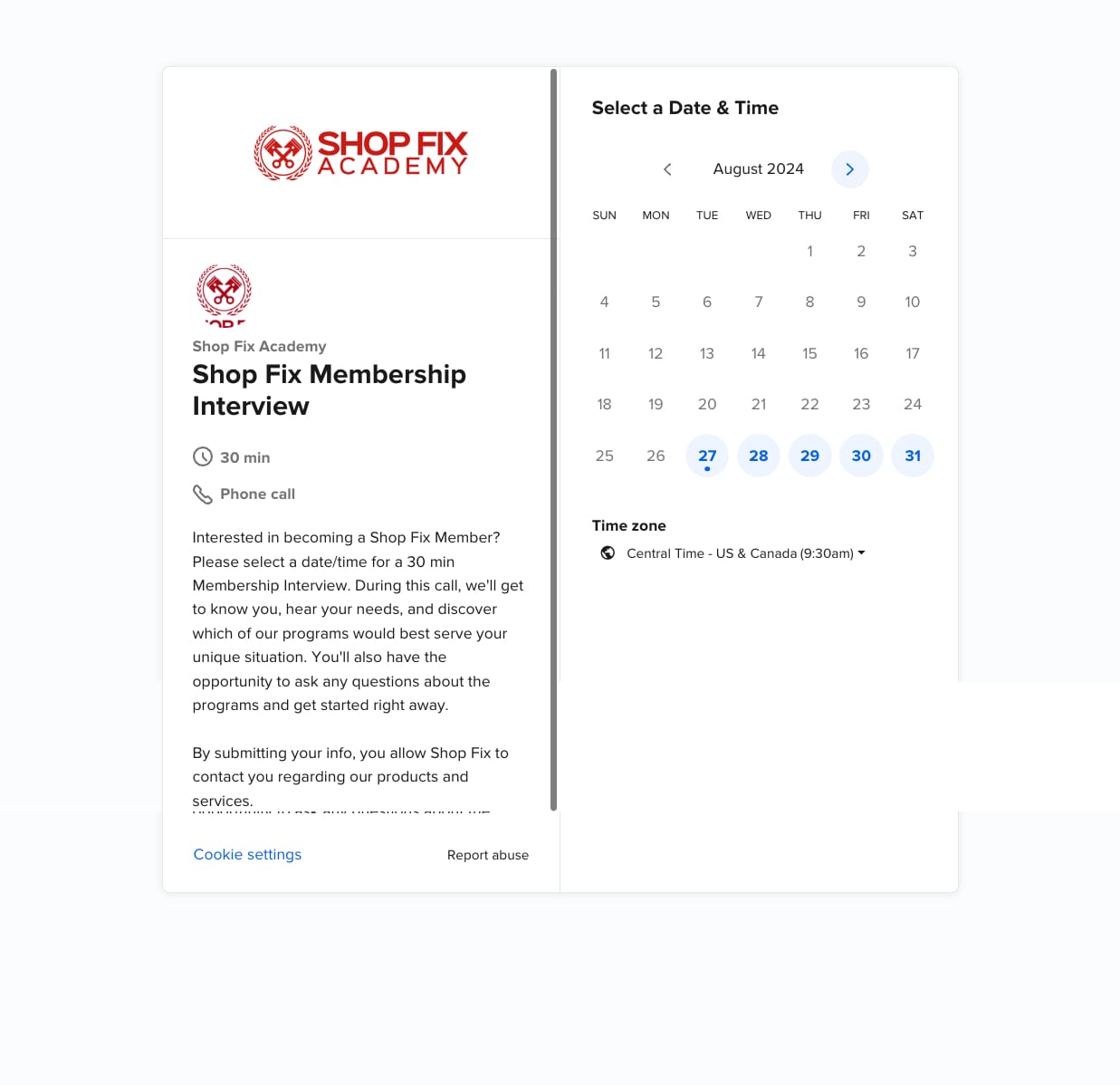 - Calendar page https://calendly.com/sfamastermind/mastermind-interview?month=2024-08