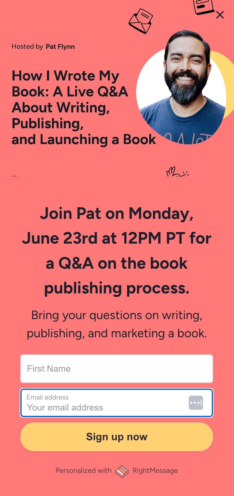 - Here's his email newsletter sign up page